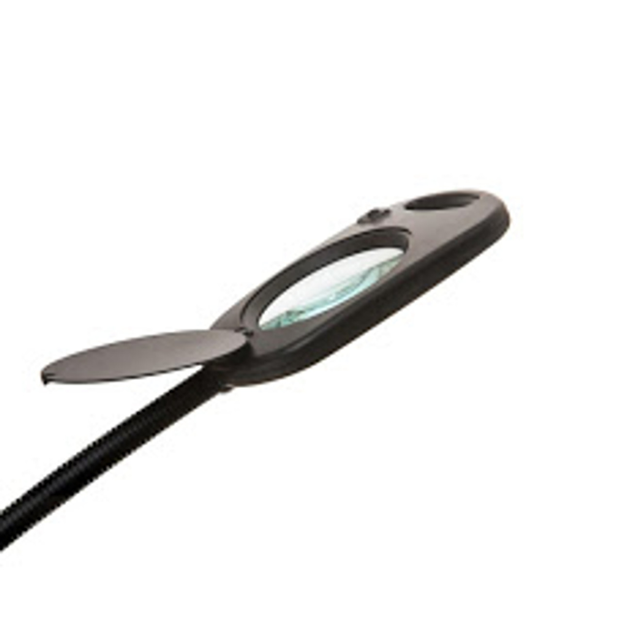 Las características técnicas incluyen una base robusta y pesada de 10 pulgadas para una estabilidad óptima, un cable eléctrico de 6 pies para mayor alcance, y un cuello flexible de 15 pulgadas que te permite ajustar la posición según tus necesidades. Además, cuenta con una cubierta abatible de la lupa para una protección adicional contra el polvo y los arañazos.