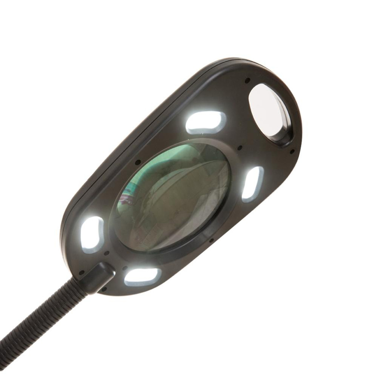 La lámpara de pie LED con cabezal ajustable ofrece una combinación perfecta de iluminación brillante estilo diurno y una lupa 4X extra grande de 5 pulgadas, diseñada para ayudarte con una variedad de tareas de lectura y trabajo detallado. Con 4 bombillas LED alrededor del perímetro de la lupa, proporciona una fuente de luz brillante de luz diurna de 6.500K para una visión nítida y clara.
