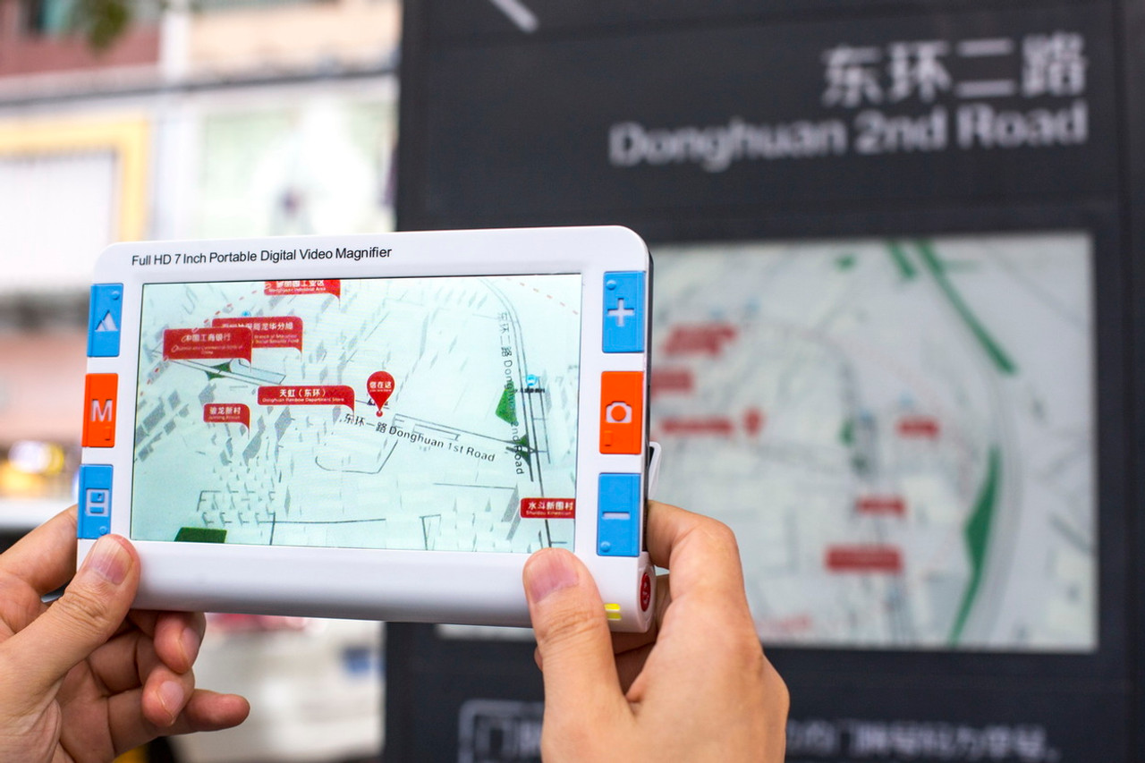 La lupa electrónica portátil HD de 7″ ofrece una visualización de alta calidad tanto de cerca como de lejos gracias a sus cámaras duales de 8 megapíxeles.