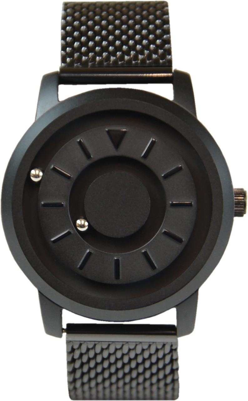 Este reloj táctil magnético de metal negro ofrece una forma discreta y silenciosa de leer la hora, basado en dos bolitas de metal para marcar las horas y los minutos. Su diseño moderno y elegante, junto con la correa de malla de acero, lo hacen ideal para un uso diario. La batería magnética suiza con una vida útil de 5 años garantiza un rendimiento confiable a lo largo del tiempo.