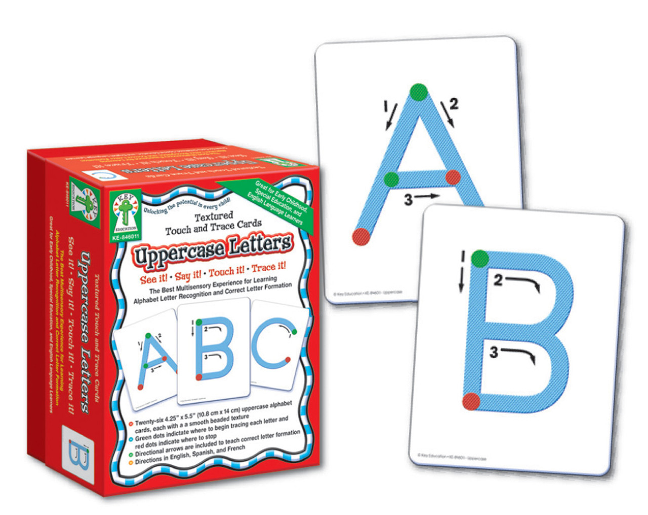 Transforme el aprendizaje en una aventura táctil con nuestras tarjetas texturizadas de tacto y trazo. Especialmente diseñadas para los pequeños exploradores, cada tarjeta de 4.25″ x 5.5″ es una puerta al conocimiento de las letras mayúsculas. Con textura suave y cuentas que guían el tacto, las flechas direccionales numeradas enseñan a los niños el trazo correcto, fomentando la independencia en el aprendizaje. Este set multilingüe en inglés, español y francés no solo es ideal para niños con discapacidad visual, sino que también desarrolla la motricidad fina y la coordinación ojo-mano, preparándolos para la escritura y más allá.