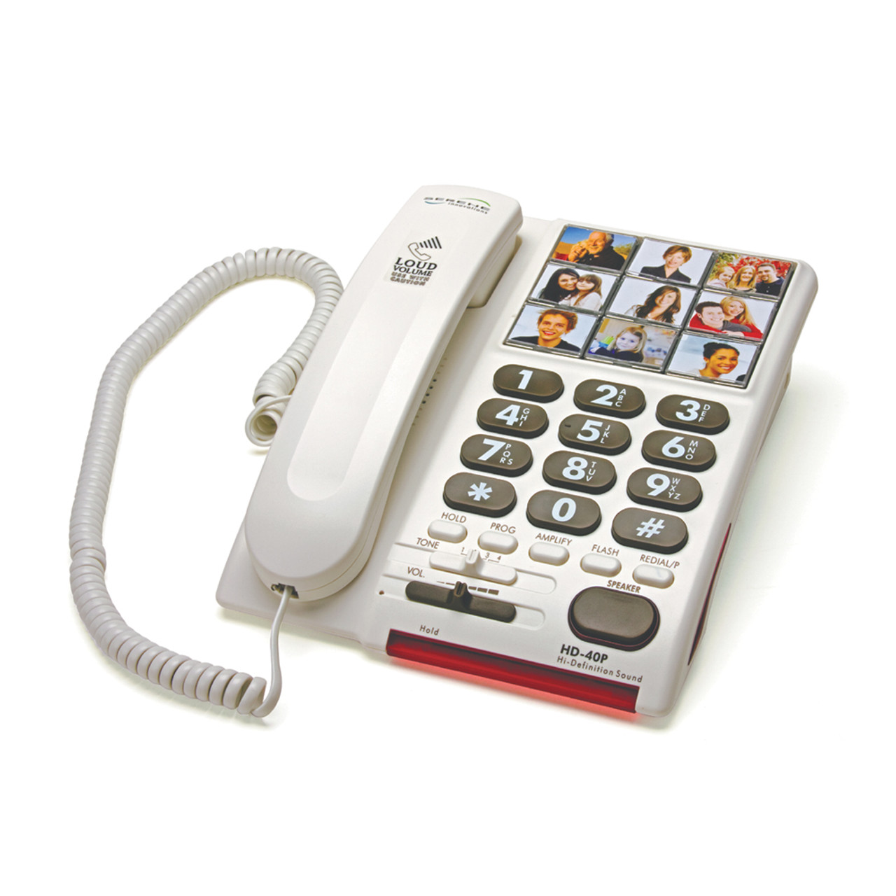 El teléfono con memoria fotográfica y tecnología HD ofrece una amplificación de 30 dB y ajustes de tono digital para una claridad de voz sin distorsión. Con nueve botones de memoria fotográfica, dos timbres visuales grandes y brillantes, y volumen de timbre ajustable hasta 90 dB, es ideal para personas con pérdida auditiva leve a moderada. No requiere adaptador de CA y puede montarse en la pared.